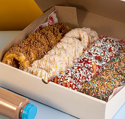 Շոկոլադով, սպիտակ գլազուրով, կառամելով, ազնվամորու կրեմով, կոկոսի փաթիլներով, դարչինով, շոկոլադի հատիկներով և գունավոր կոնֆետներով պատված պոնչիկներ