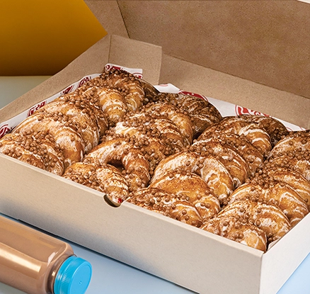 Սպիտակ գլազուրով, կառամելով, դարչինով եւ շոկոլադե հատիկներով պատված պոնչիկներ
