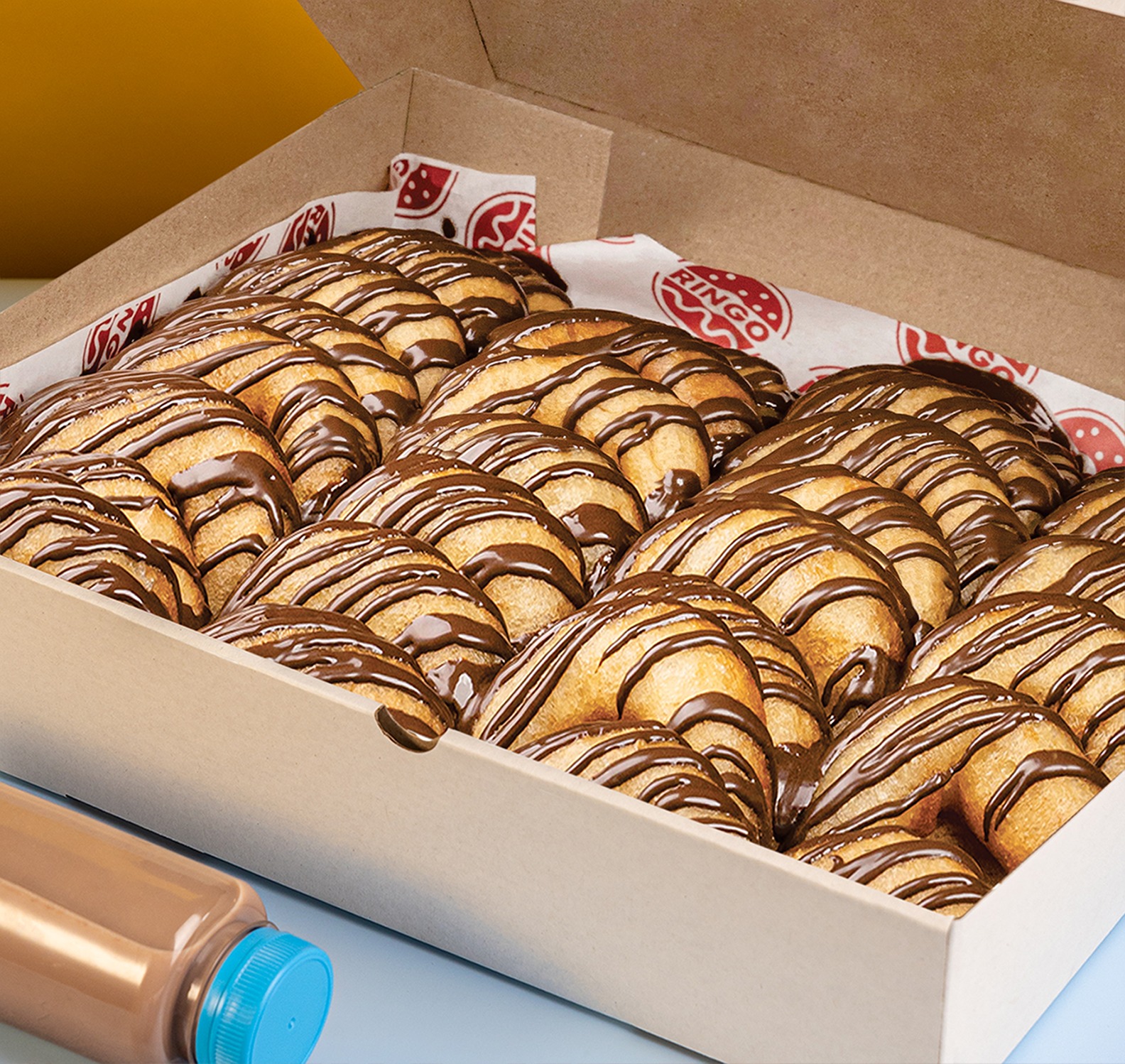 Շոկոլադով, խտացրած կաթով, ազնվամորու կրեմով, խնձորի ջեմ-դարչինով և շաքարի փոշիով պատված պոնչիկներ